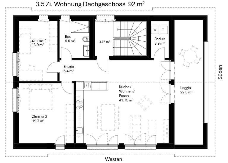 3.5 Zi. Dach-wohnung | vermietet | 92 m2 | 22 m2 | |