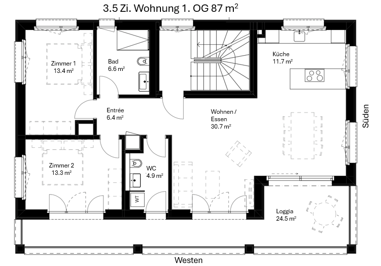3.5 Zi. Wohnung 1. OG | vermietet | 87 m2 | 25 m2 | |