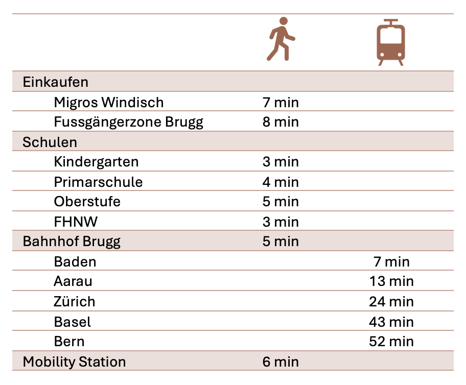 In unmittelbarer Nähe zum Bahnhof Brugg profitieren Sie von schnellen Verbindungen nach Zürich, Bern, Basel und Aarau.